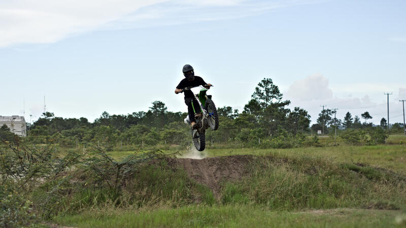 The video, filmed during the weekend, shows the shirtless motorcycle rider leaning back in a lounging position while using his bare feet to operate the handlebars.