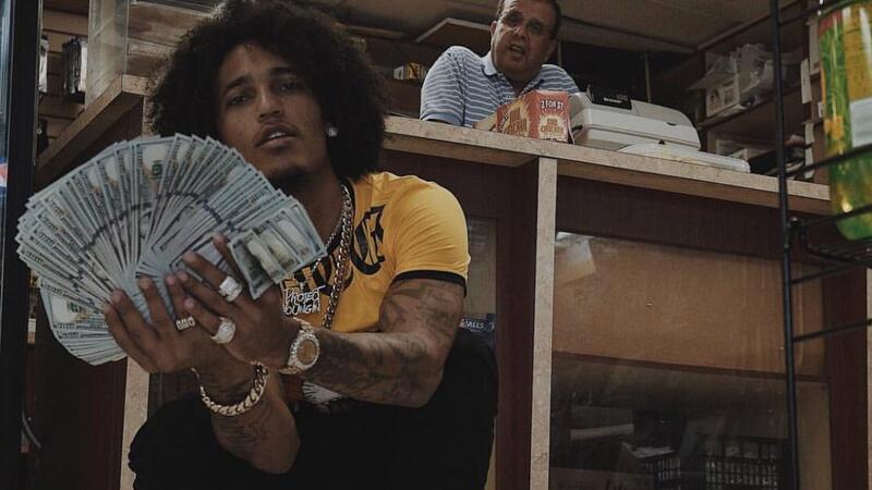 In the clip the St. Petersburg musician nods as he counts and flaunts a stack of $100 bills.