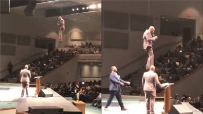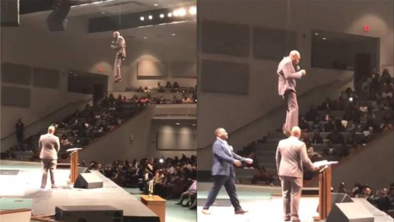A Mississippi preacher's unusual entrance is going viral after he used zip line cables to make a "flying" entrance to his sermon.