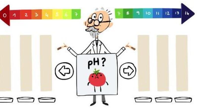 Google is honoring Danish chemist Soren Peder Lauritz Sorensen with an interactive Doodle that quizzes users using the pH scale.