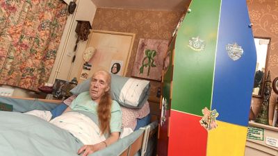 She will be laid to rest in a red, yellow, green and blue coffin adorned with stickers of her favourite Harry Potter characters, which was decorated by her stepson Terry and is currently being kept in her spare room.