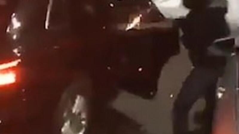 In the video, the man pulled open the black car's rear doors open but luckily didn't succeed in his plans.