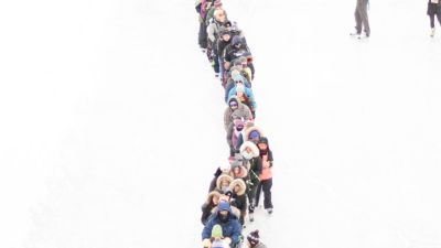 Guinness World Records confirmed 395 skaters set a world record when they formed a human chain on a frozen river in Canada.