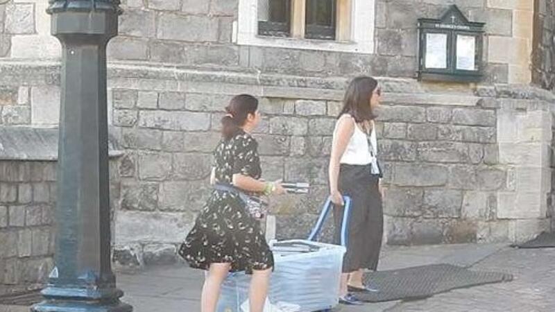 After negotiating a path through royalists waving Union Jacks to commemorate the big day, the delivery workers were permitted access to the grounds by armed police.