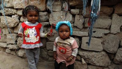 Two Yemeni children pose in the capital Sana'a (AFP/File Photo)