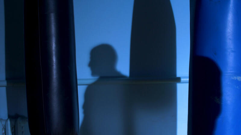 Behind the apartment’s curtain, a tough guy is boxing, enough to make any passing criminal think twice before breaking in.