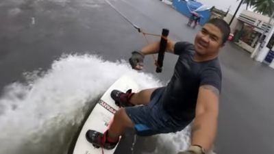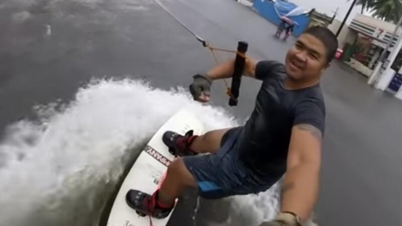 Man Shocks People for Surfing on Flooded Street in Philippines