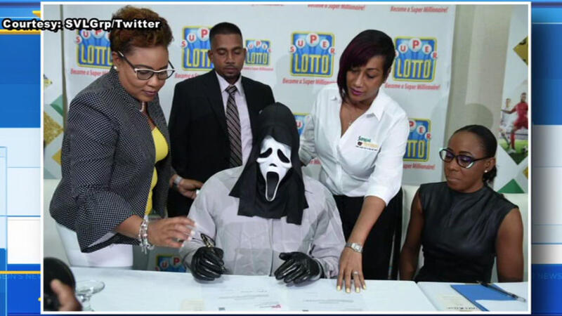 A Jamaican man who wished to remain anonymous while collecting a $1.17 million lottery prize donned the costume of the killer from Scream.