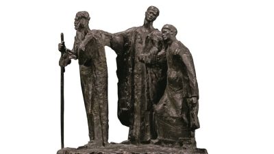 The composition of three bronze men echoes Rodin’s “Three Shades,” a work with which Mokhtar would have been familiar. Instead of simply copying the French master’s work, however, he reworks and repurposes the composition to express his own identity through the recognizable Egyptian clothing of the figures.