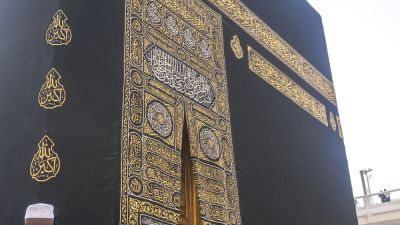 The Kiswa consists of five pieces; four of them cover the four sides of Kaaba, while the fifth one is hung as a curtain above the door of Kaaba.