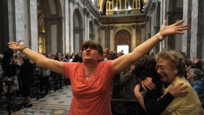 At the St. Francis of Assisi church in the colonial Old San Juan district in Puerto Rico, church secretary Antonia Veloz exchanged jubilant high-fives with the priest.