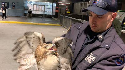 The New York Police Department joked a red-shouldered hawk captured inside Penn Station had "attempted to beat the holiday rush" but "missed the train."