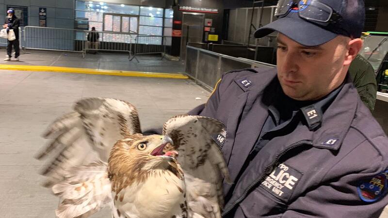 The department said an Emergency Services Unit detective responded Sunday night to Penn Station when a red-shouldered hawk was reported inside the building.