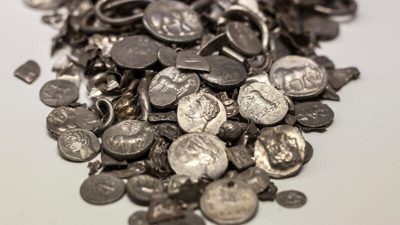 Among the artifacts displayed are coins minted by Lydians, an ancient kingdom of Anatolia known to be the first to have coins in the region.