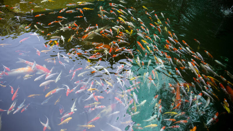 The video shows thousands of fish flying over a lake as they are dropped from a plane.