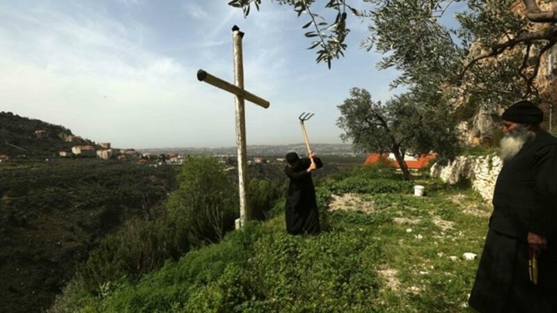 Greek Orthodox monks work in a garden at the monastery of Our Lady of Hamatoura in northern Lebanon on March 08, 2016. (AFP/ File Photo)