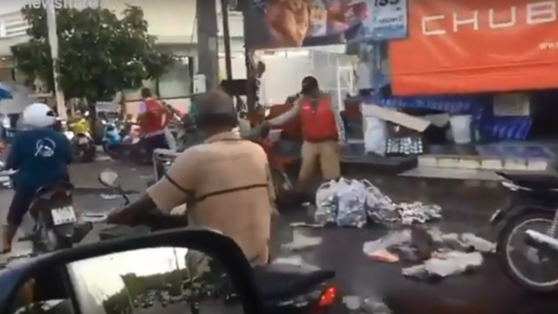 Hundreds of local residents descended on a street in Thailand when an overturned truck spilled 80,000 cans of beer into the road.