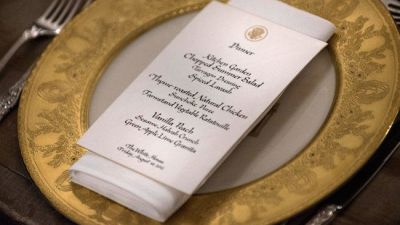 For the main course, the White House kept it simple and offered a halibut fillet with roasted cauliflower Swiss chard and served with crushed sumak, topped with mint butter.
