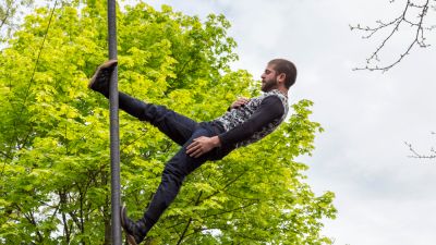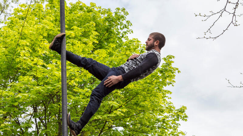 Chinese pole artist from the Cirque Eloize performing in public during Montreal’s 375th anniversary celebrations. (Shutterstock/ File Photo)