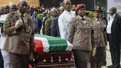 Her memorial service that was held earlier in the day was attended by thousands of South Africans mostly dressed in political party regalia. They sang and danced to celebrate her life.