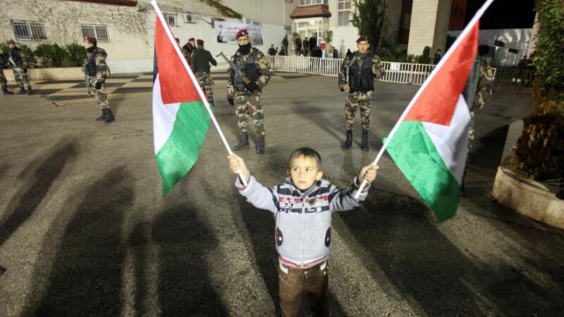 A young Palestinian boy holds his national flag. (AFP photo/Abbas M)