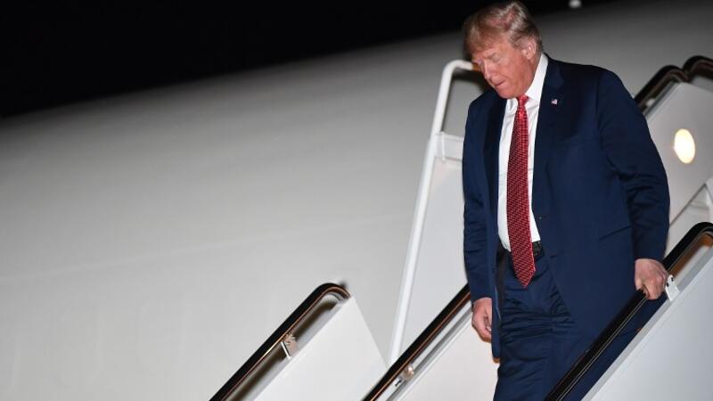 Trump has had a busy week criss-crossing the nation delivering speeches while dealing with the FBI probe into his Supreme Court nominee Brett Kavanaugh and investigations into his alleged tax scheme inheritance - and he was certainly in a rush to get on his jet Thursday evening.