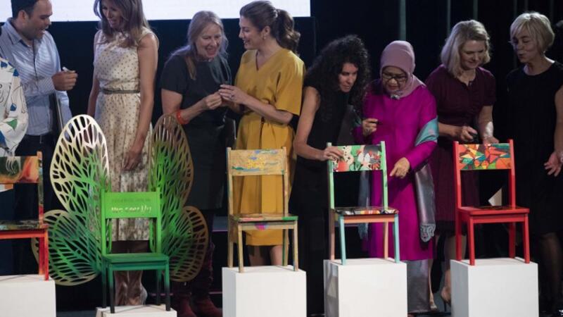 The pair met with fellow partners of world leaders, including Japanese Prime Minister Shinzo Abe's spouse Akie Abe, Turkish first lady Emine Erdogan, European Council President Donald Tusk's spouse Malgorzata Tusk, and Canadian Prime Minister Justin Trudeau's spouse Sophie Gregoire Trudeau.