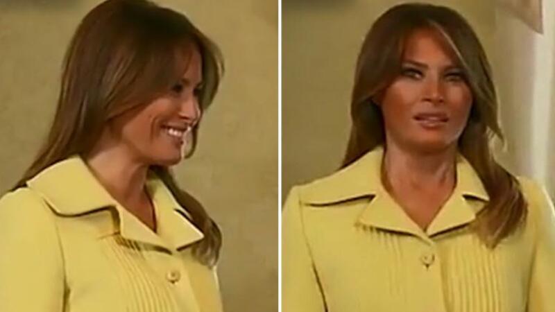 Melania, who is a few inches taller than the ex-spy strongman, also smiles during the handshake in an apparently natural way.