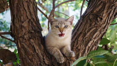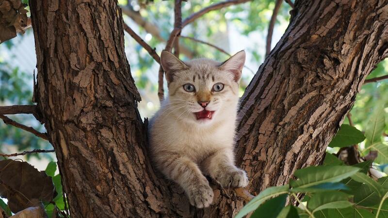 The cat was then able to climb back to earth on its own, the RSPCA said.