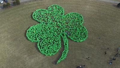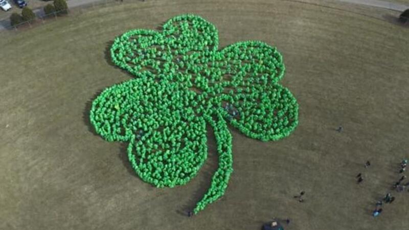 A total 1,200 donned green and formed themselves into the shape of a shamrock in New York state to break a Guinness World Record.