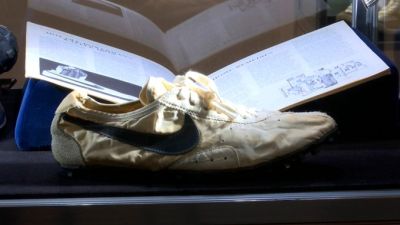Sotheby's displayed the "Moon Shoe" as part of a 100-sneaker collection, which includes a variety of rare Air Jordans, an Adidas collaboration between Chanel and singer Pharrell Williams, and a pair of Nike Mags inspired by the self-lacing shoes won by Marty McFly in Back to the Future II.