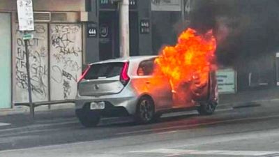 Bystanders said they initially saw black smoke coming from the vehicle, which was left with a charred driver's side door.