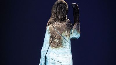 'We are here today because we put up again a statue of Melania to the place where it was burnt and to commemorate the statue that was set on fire,' said Slovenian artist Marko Vivoda.