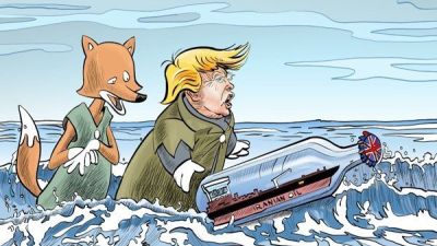 The exhibition, as the name implies, features numerous caricatures depicting Queen Elizabeth II in response the unlawful seizure of Iran's Grace 1 supertanker by British Royal Marines off the coast of Gibraltar.