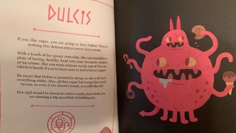 A Children's Book of Demons, published in the US and aimed at five to ten year olds, contains symbols to 'call up' colourful characters that are also aimed at helping them get rid of bullies and eating their dinner, by transforming it into a plate of cookies.