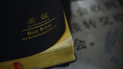 People put their hands through the sunroof of their cars and clapped along while reading from hymn sheets provided by the church.