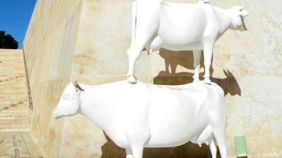 A cow that was washed four miles out to sea by Hurricane Dorian gave birth to an all-white calf with mismatched eyes in North Carolina.