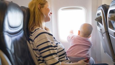 During the seat selection stage of making a booking with the carrier, any seats taken by a young child are highlighted with a baby icon.