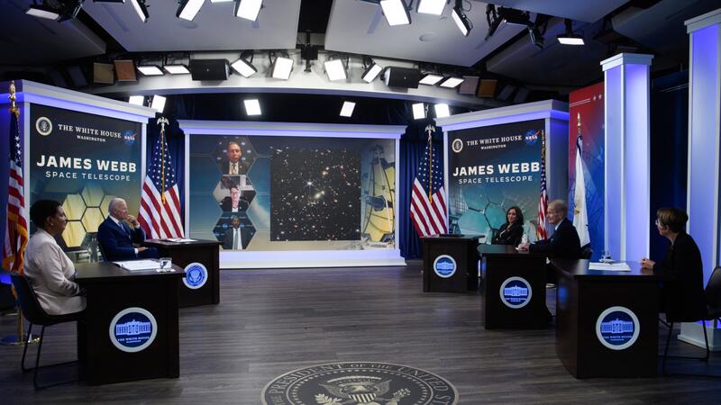 Biden and Vice President Kamala Harris received a briefing from NASA officials during the event, and previewed the first images from the Webb Space Telescope, which are "the highest-resolution images of the infrared universe ever captured," according to the White House.