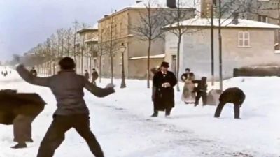A black-and-white film capturing a group of men and women having a snowball fight in France in 1896 has been brought back to life in full colour for a 21st century audience.