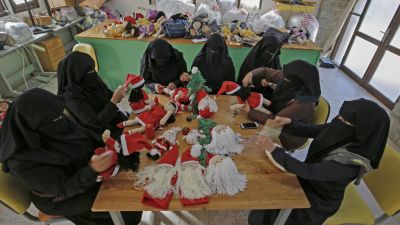 A group of Muslim women in northern Gaza have been spreading the holiday cheer by sewing Santa Claus dolls for Christmas.