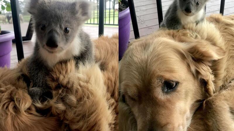 Kerry McKinnon lives in Australia with her dog, Asha, and their life was never boring. One morning her husband called her to see how their Golden Retriever was sitting outside with a baby koala perched atop her back.