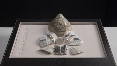 The glitzed-up face mask may lend some pizzazz to the protective gear now mandatory in public spaces in many countries. But at 270 grams (over half a pound) — nearly 100 times that of a typical surgical mask — it is not likely to be a practical accessory to wear.