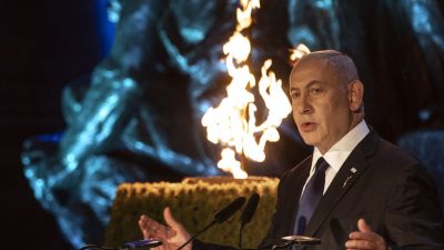 Benjamin Netanyahu delivers a speech at the Holocaust Martyrs' and Heroes Remembrance Day