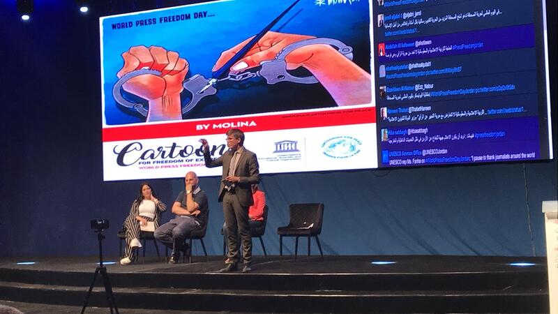 Omar Abdallat, a cartoonist who often focuses on the issue of press freedom, shared, "Cartoonists must be careful before drawing caricatures, taking into account the implications of their drawings, because when these are shared with the public, they may have a strong impact."