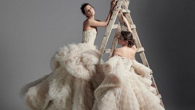 With ethereal ruffles and cascading tulle, Jabotian is known for his flair and fairy-like glamour and offers up structured gowns that wouldn’t look out of place in the palaces of a bygone era. Yet, importantly, he manages to pay tribute to the past without straying into the realm of costume-like attire, straddling the line between haute couture and historical homage with finesse.