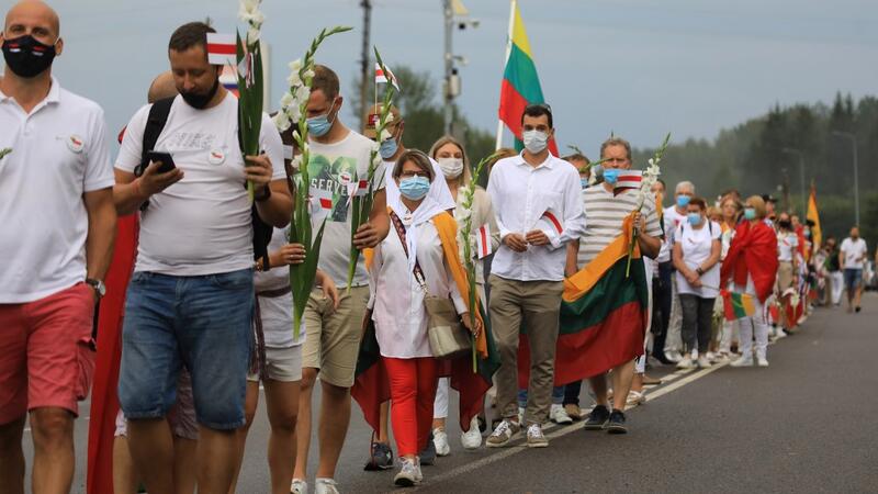 Meanwhile in Lithuania, people stood in a 35,000-strong human chain stretching 34 km (21 miles) from central Vilnius to the Belarus border on Sunday to show support for protesters in Belarus and opposition leader Sviatlana Tsikhanouskaya, who has taken refuge in the country.