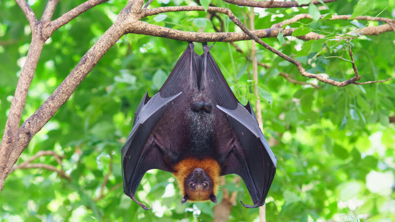 Fruit bat hanging on tree in forest. Lyle's flying fox (Shutterstock)