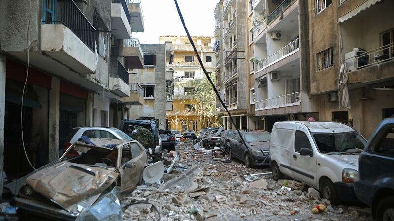 A view of the partially destroyed Beirut neighbourhood of Mar Mikhael on August 5, 2020 in the aftermath of a massive explosion in the Lebanese capital.PATRICK BAZ / AFP