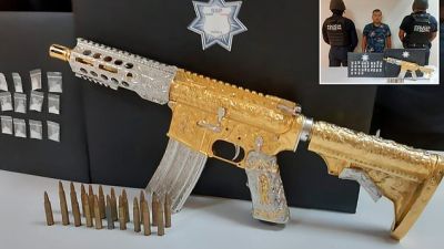 Mexican police have seized a personalized gold-plated AR-15 assault rifle from a boss of the fearsome Las Bigotonas gang.